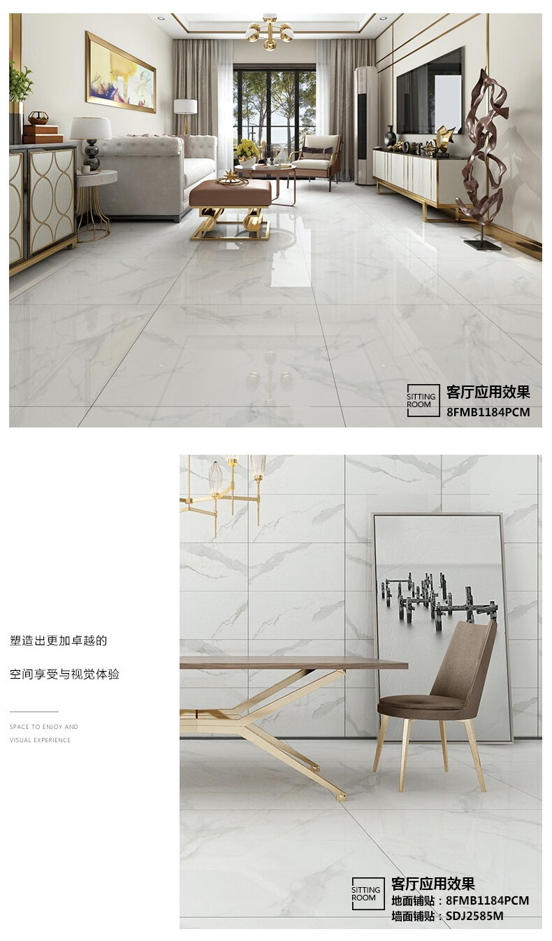 XMSJ卡拉拉白厨房防滑瓷砖白色大理石瓷砖900*1800600*1200 卡拉拉白6