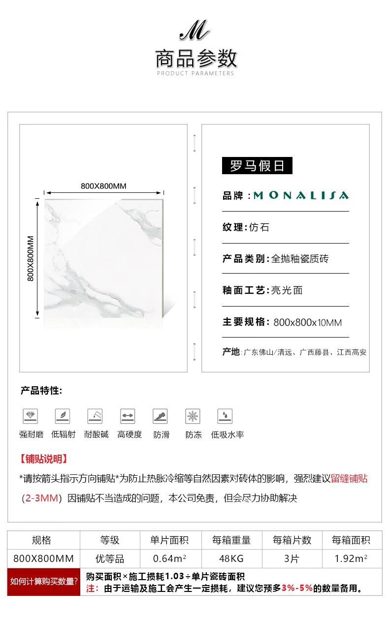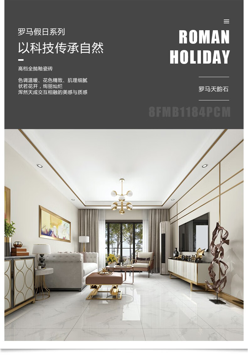 马可波罗MARCO POLO仿石纹地砖全抛釉客厅瓷砖 梨花白 800X800套餐 活动 39片