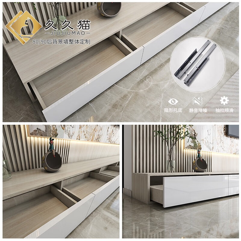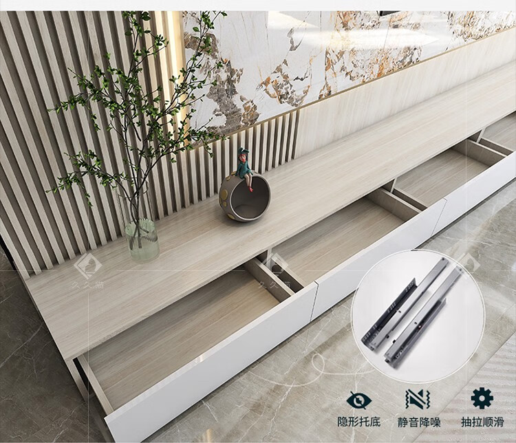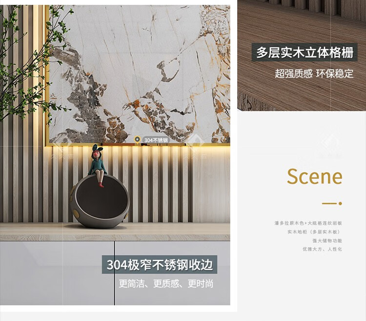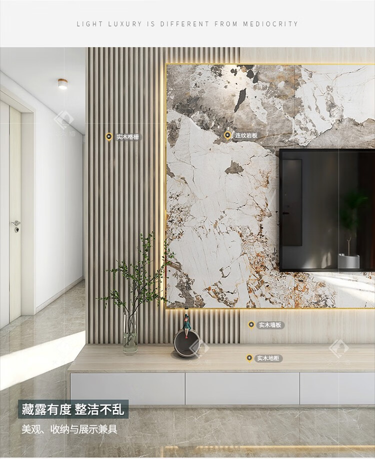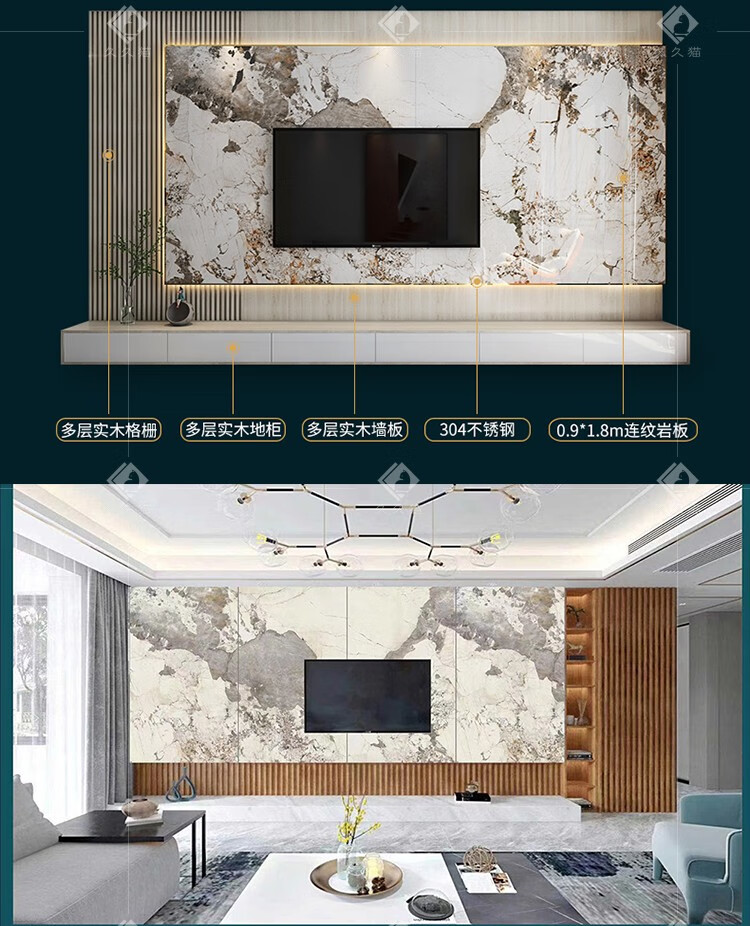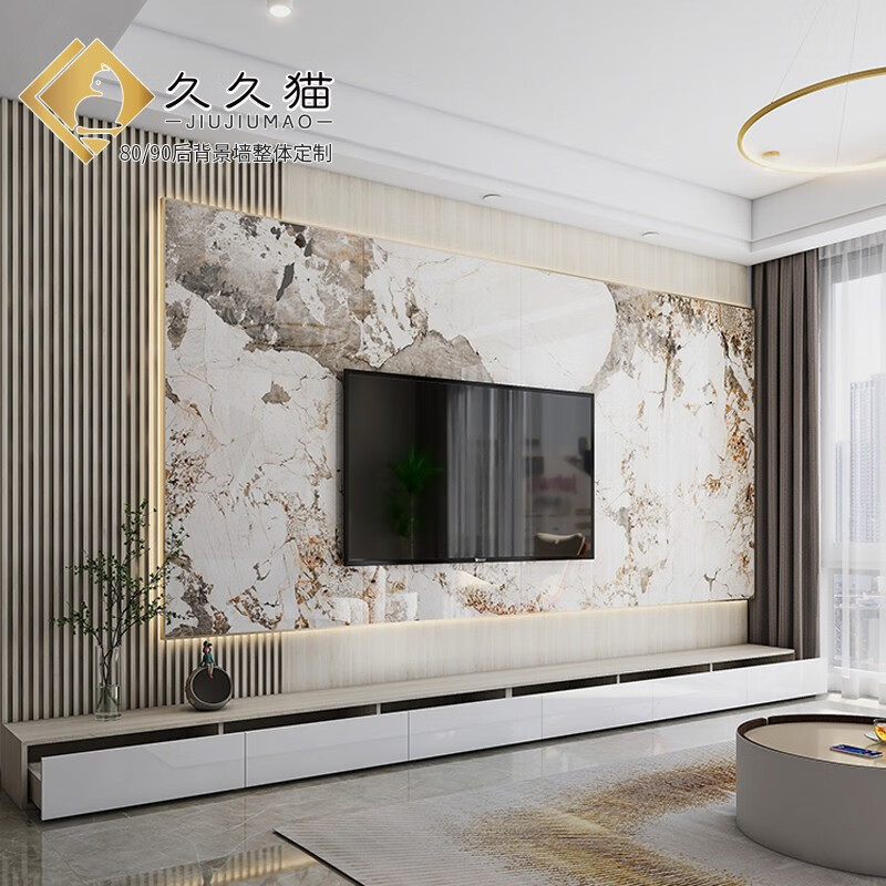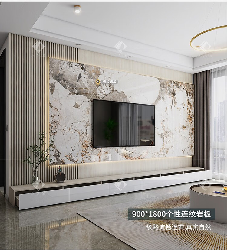 久久猫潘多拉岩板悬空电视背景墙瓷砖客厅连纹900x1800实木格栅抽屉网红