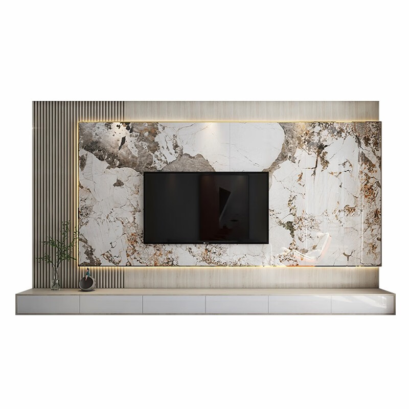 XMSJ2023悬空岩板电视背景墙瓷砖大理石轻奢新中式客厅电视