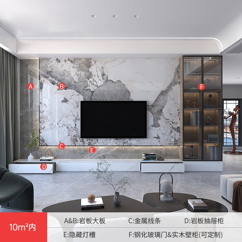 斯奇 广东佛山欧式装饰风格 电视背景墙岩板客厅 支持定制 可入户安装