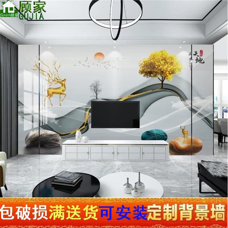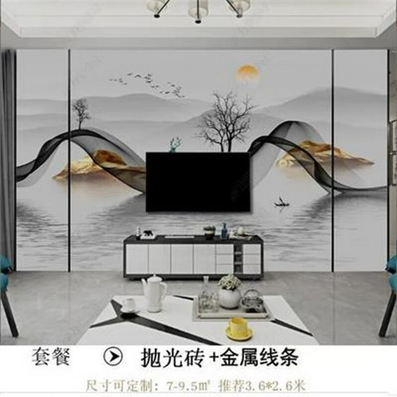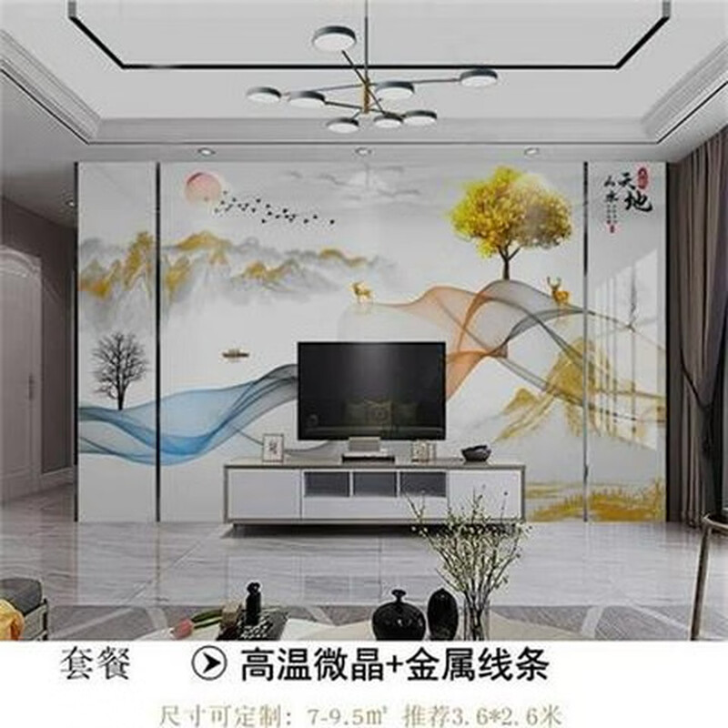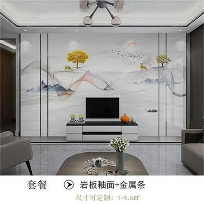XMSJ客厅新中式微晶石背景墙山水现代大理石影视墙岩板电视背景墙瓷砖 4-9.5