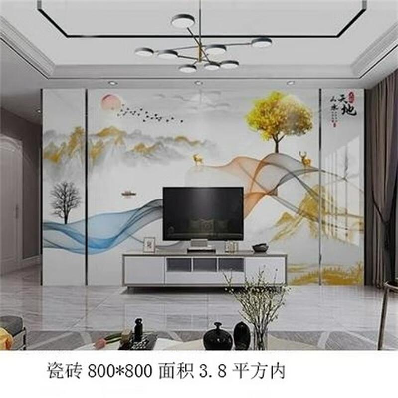 FANCYCHIC900x1800岩板瓷砖客厅悬空背景墙大板连纹客厅影视墙山水画新中式 0.9-1.8㎡