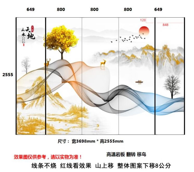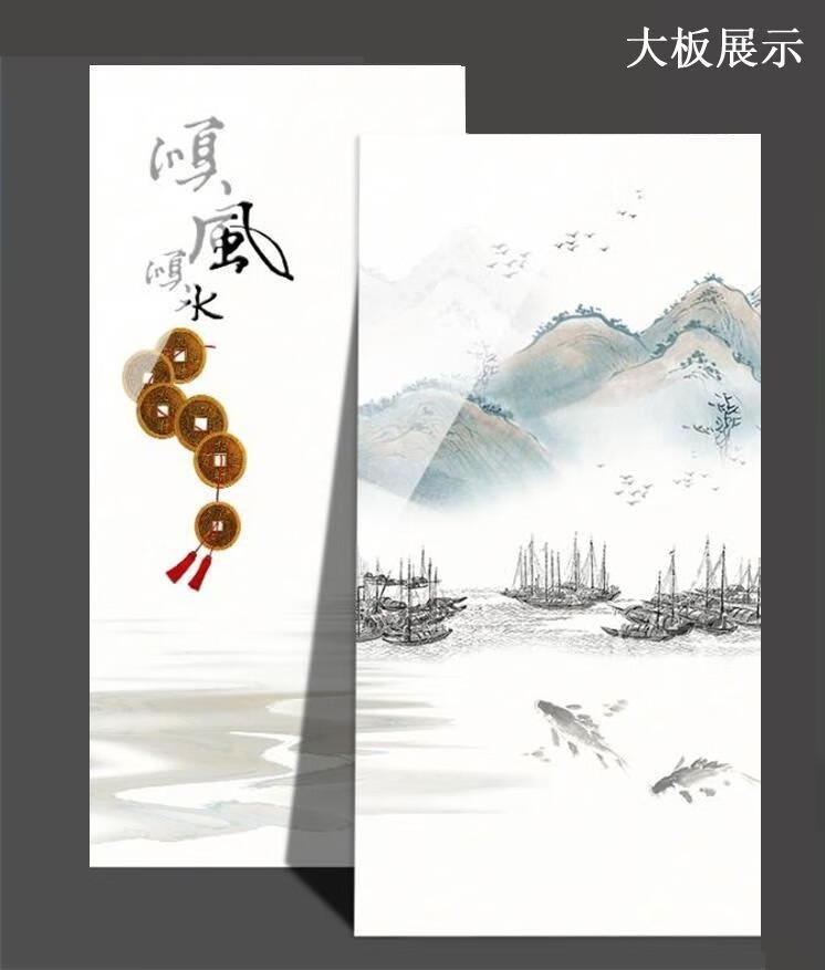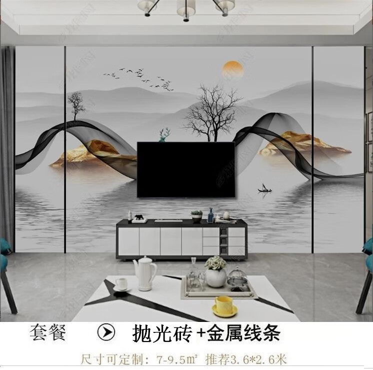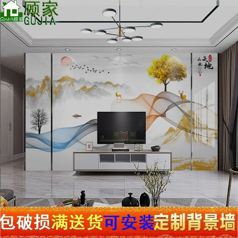 FANCYCHIC900x1800岩板瓷砖客厅悬空背景墙大板连纹客厅影视墙山水画新中式 0.9-1.8㎡