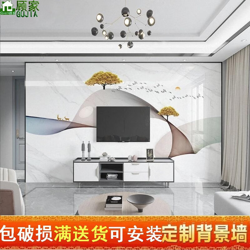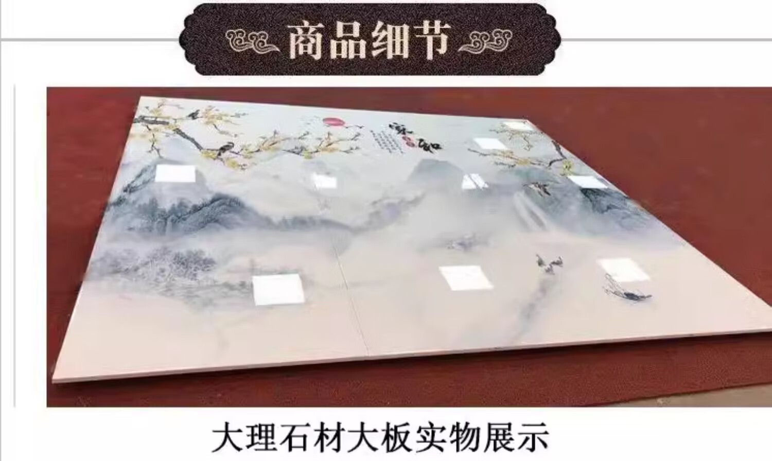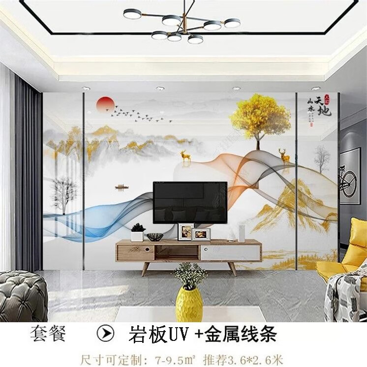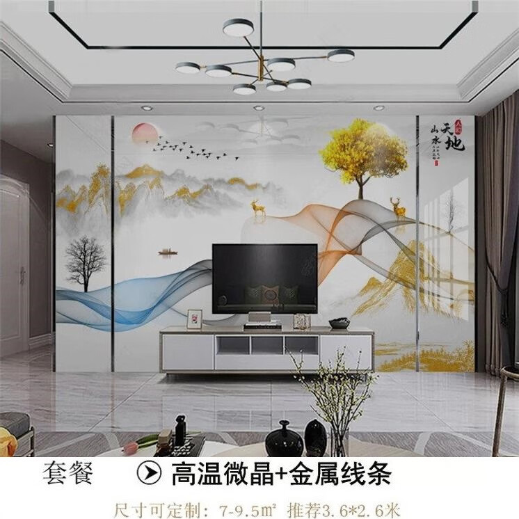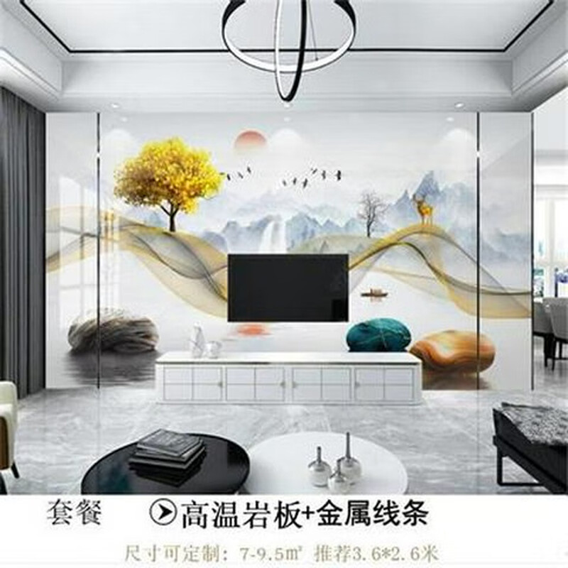 客厅新中式微晶石背景墙山水现代大理石影视墙岩板电视背景墙瓷砖 4-9.5