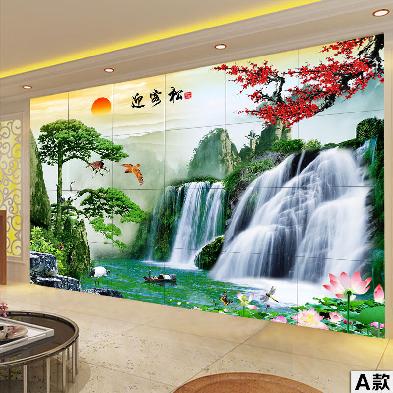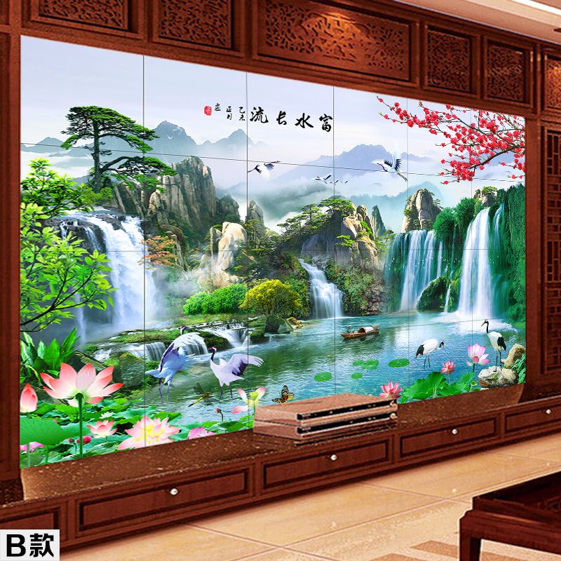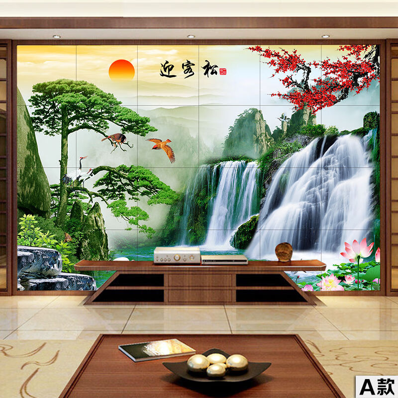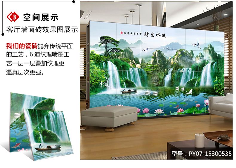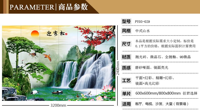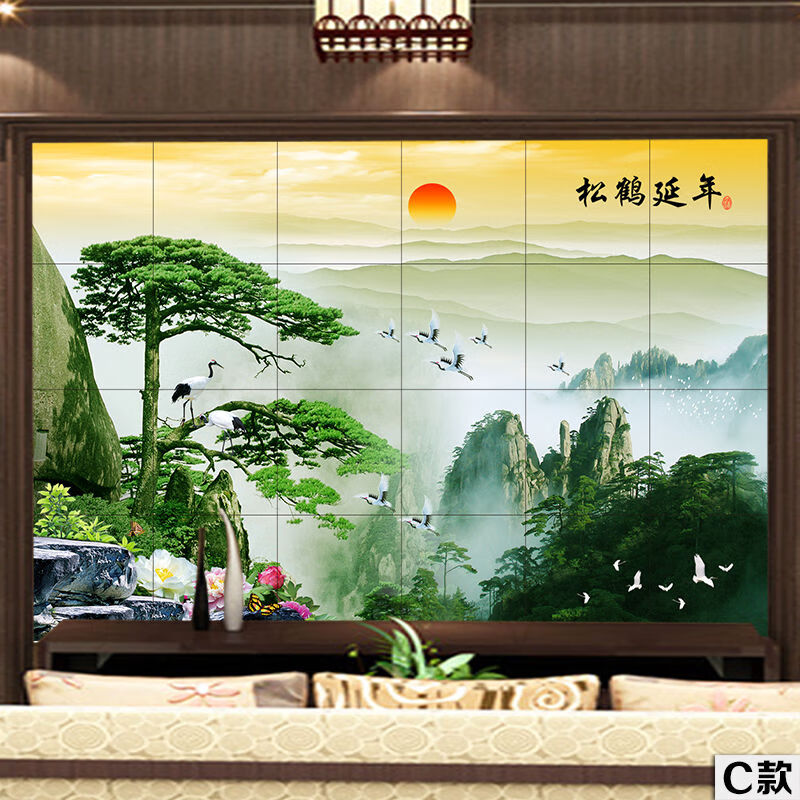 FANCYCHIC900x1800岩板瓷砖客厅悬空背景墙大板连纹客厅影视墙山水画新中式 0.9-1.8㎡