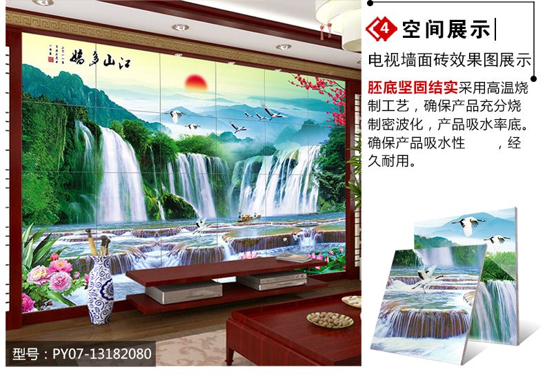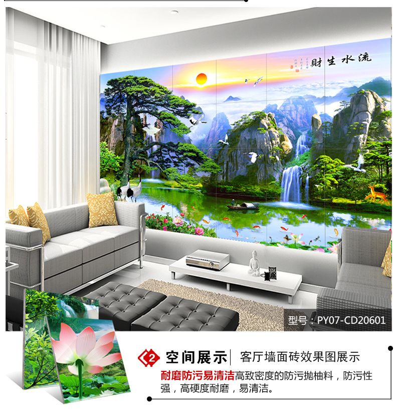 客厅新中式微晶石背景墙山水现代大理石影视墙岩板电视背景墙瓷砖 4-9.5