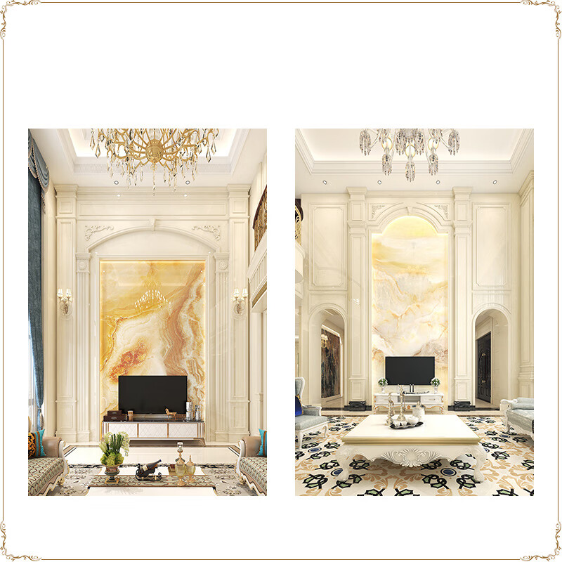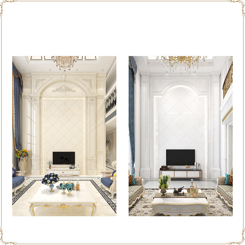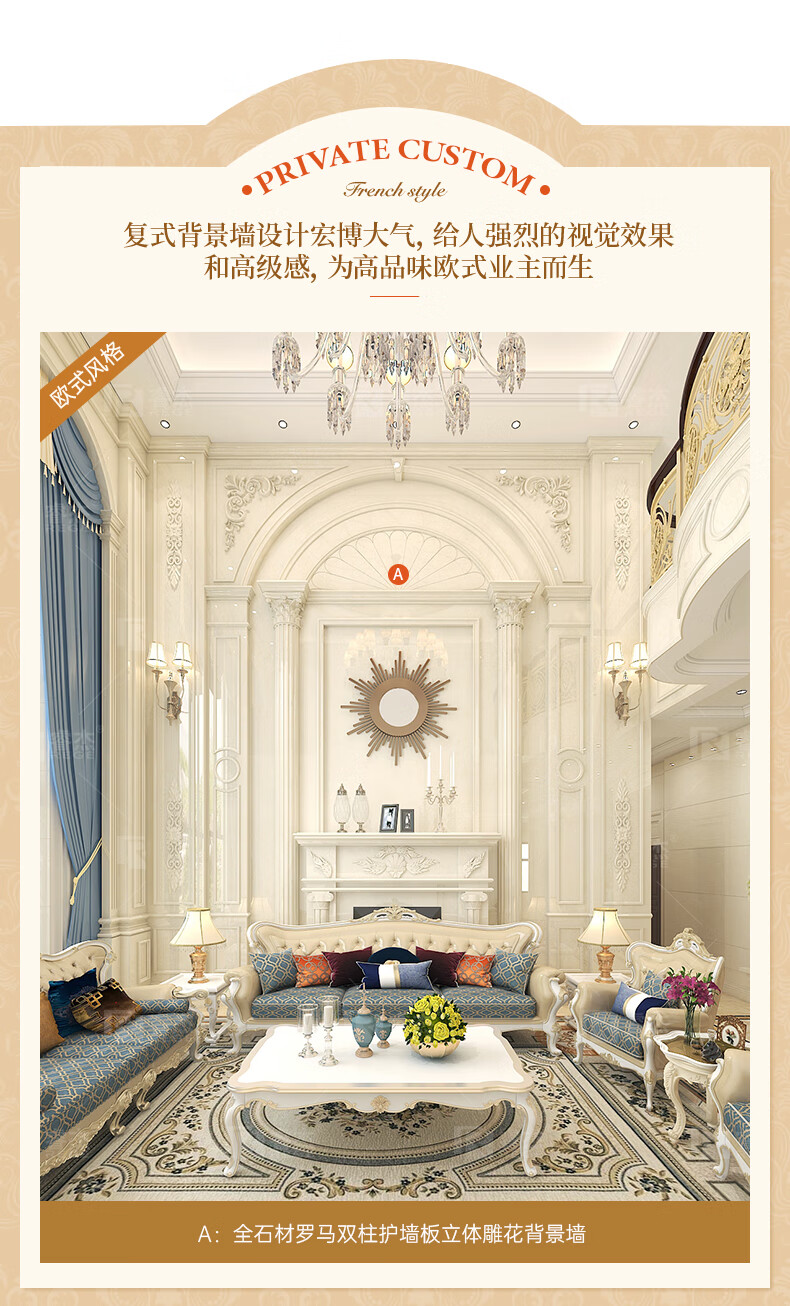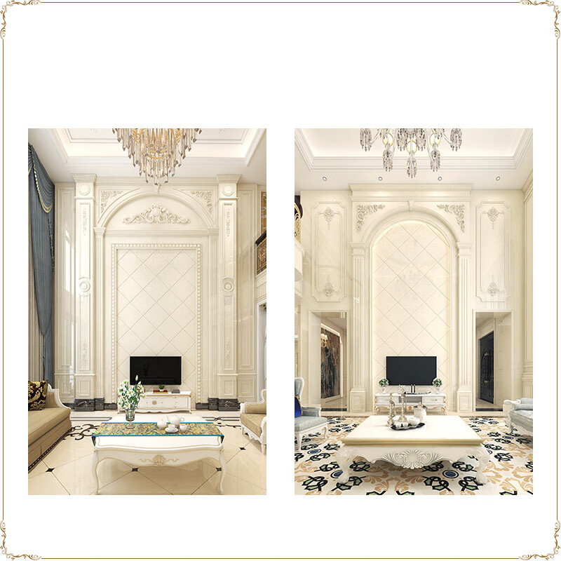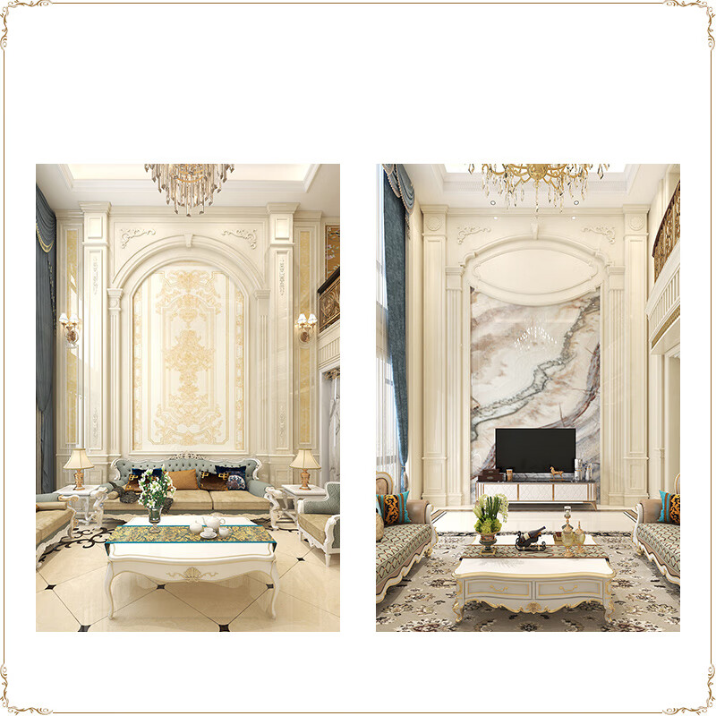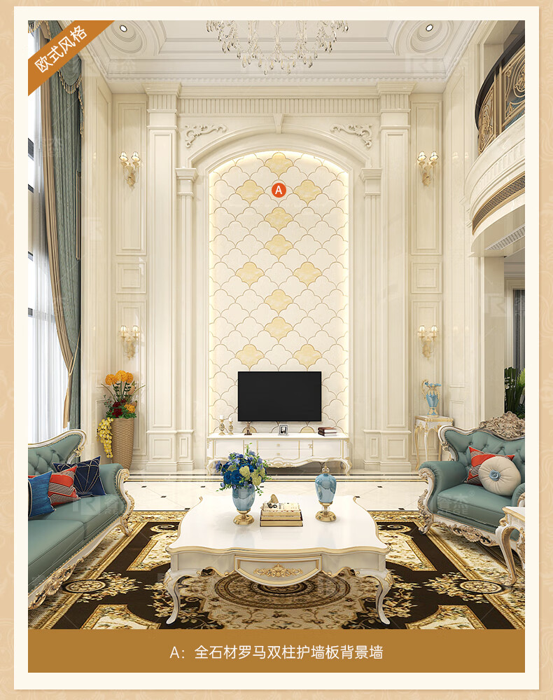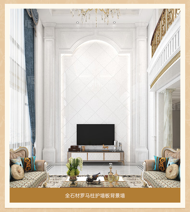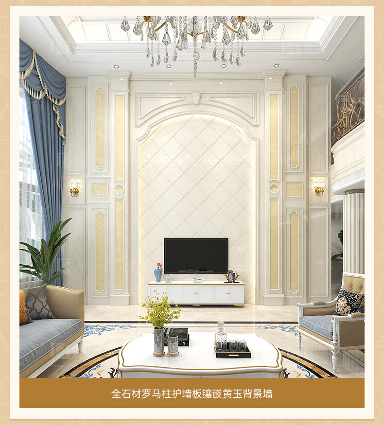简欧瓷砖背景墙别墅欧式复式护墙板轻奢岩板电视墙罗马柱大理石材