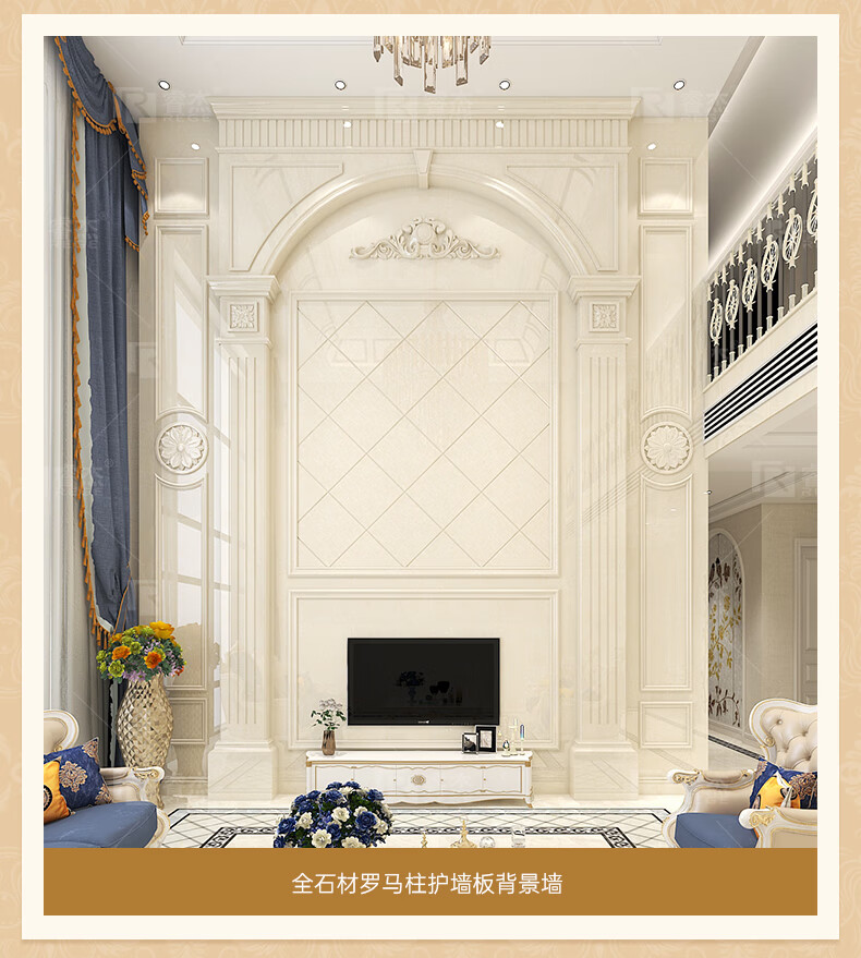 久久猫欧式天然大理石材电视背景墙全屋整装别墅自建房罗马柱瓷砖影视墙