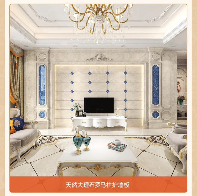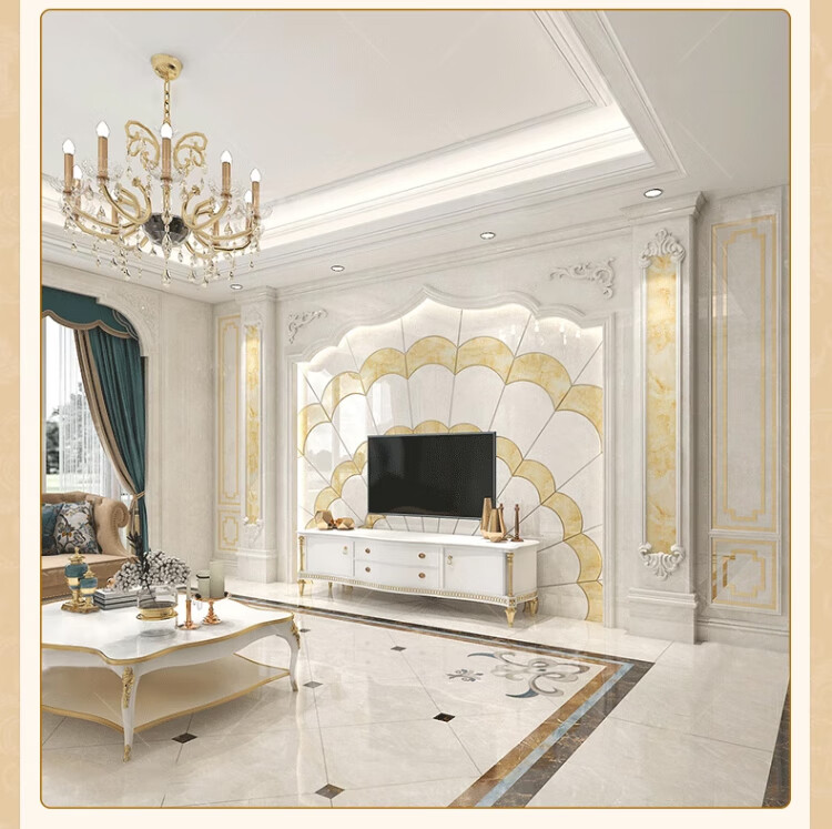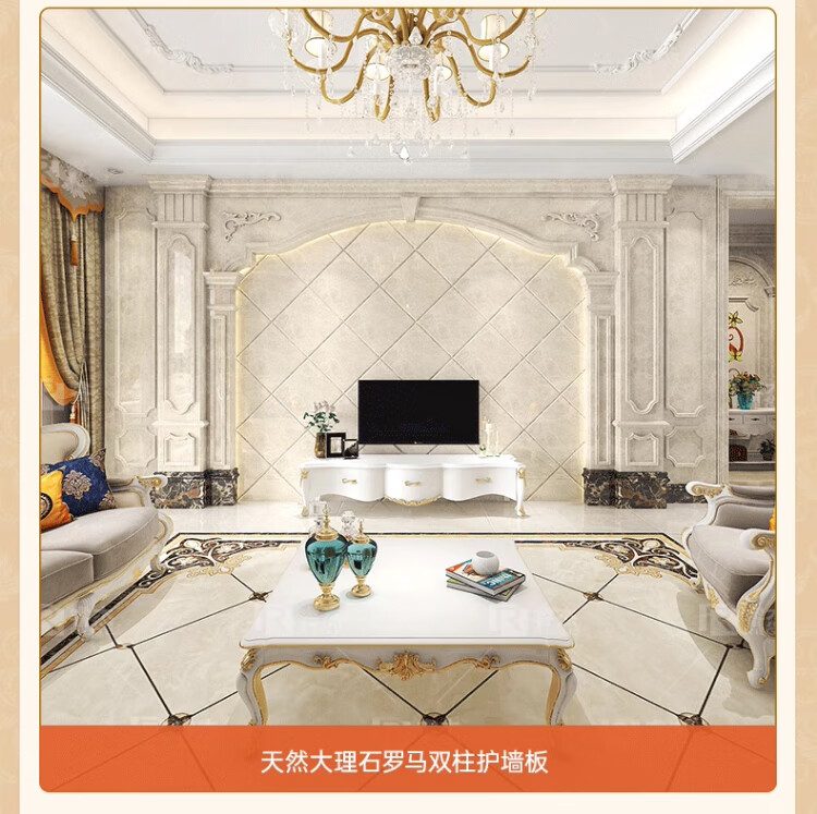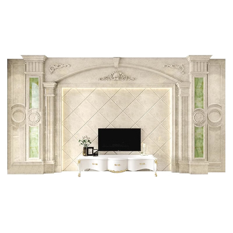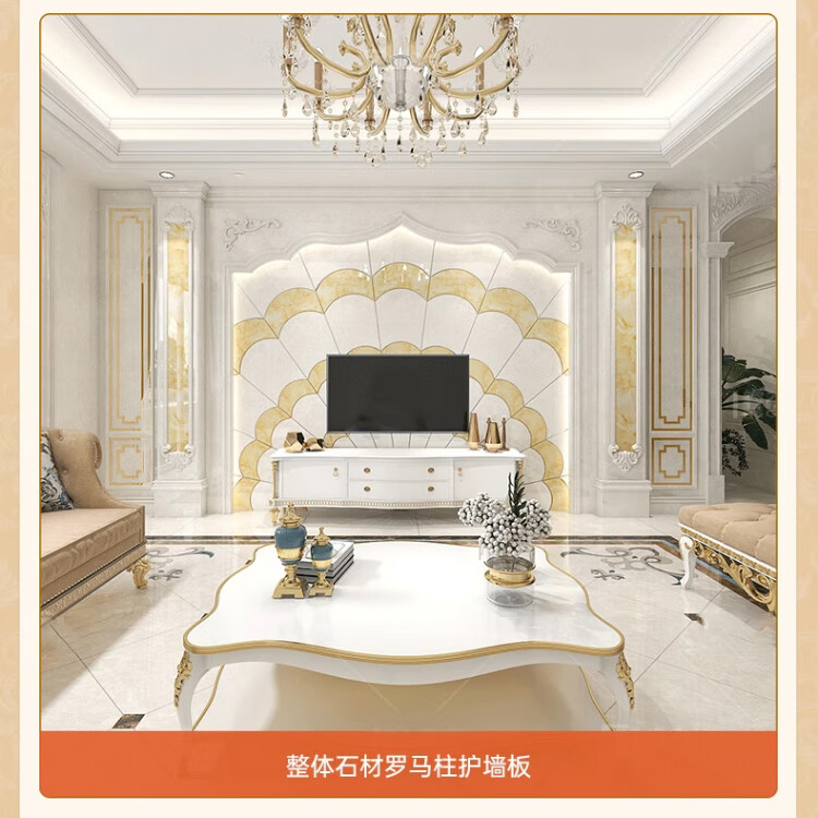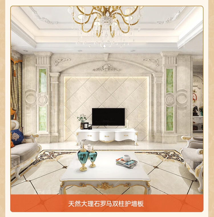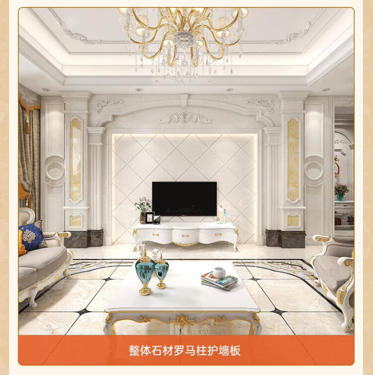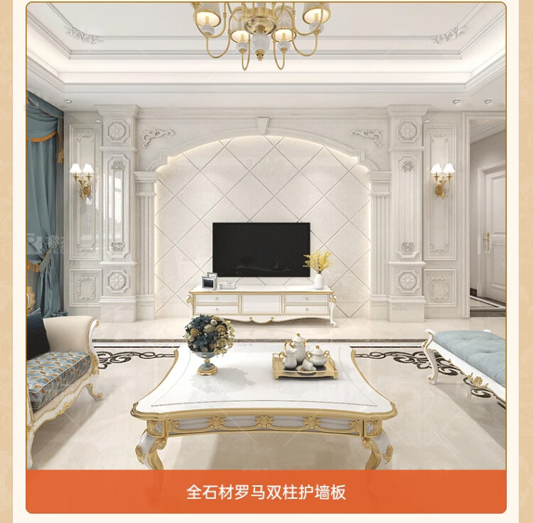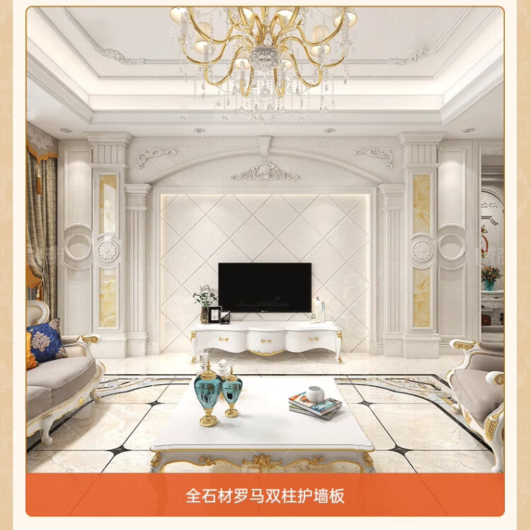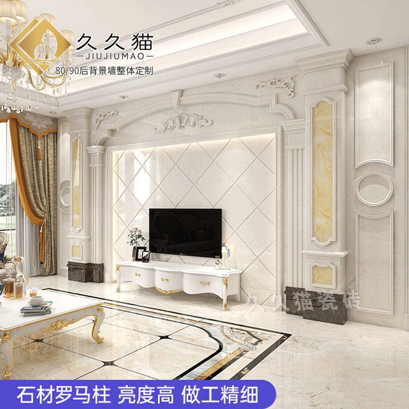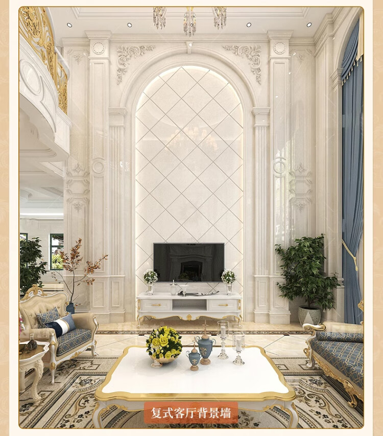 简欧瓷砖背景墙别墅欧式复式护墙板轻奢岩板电视墙罗马柱大理石材