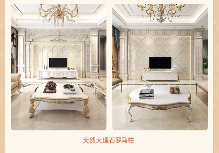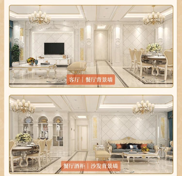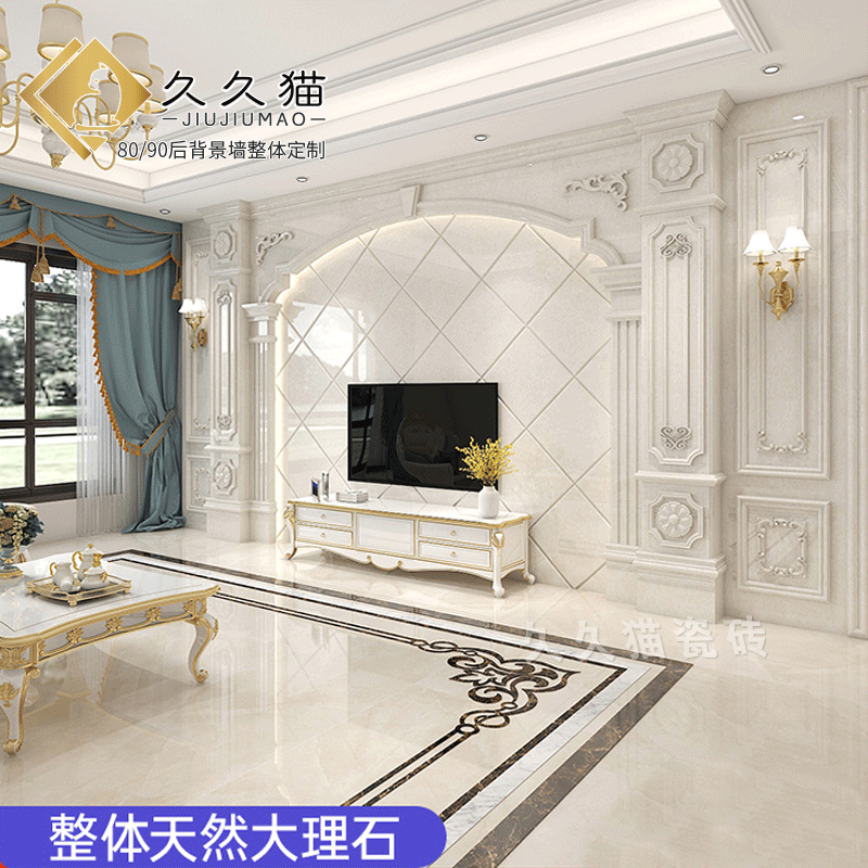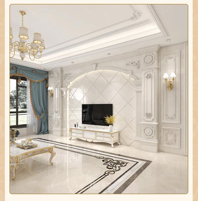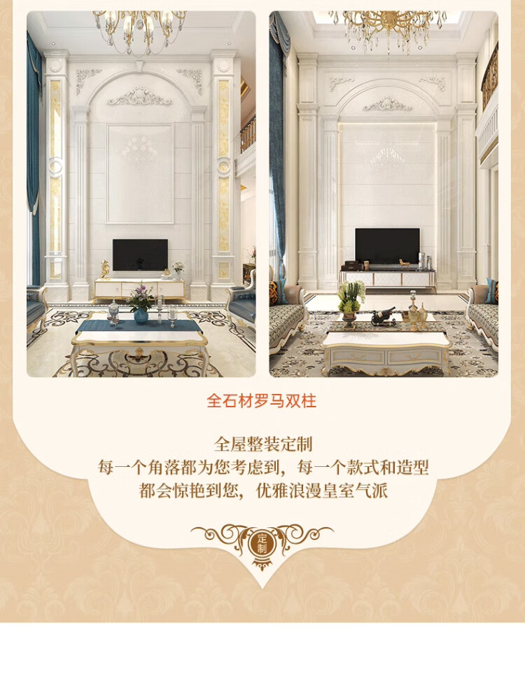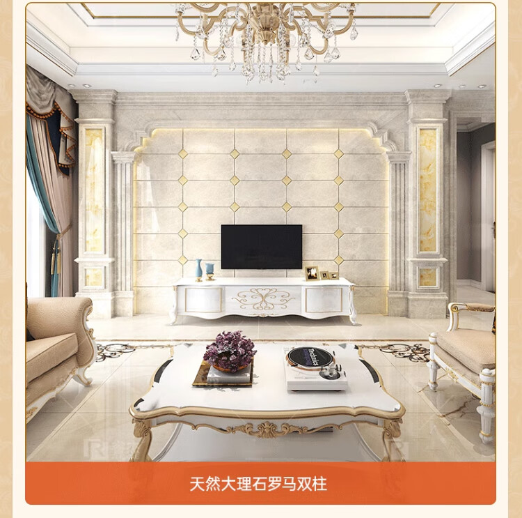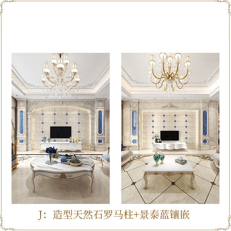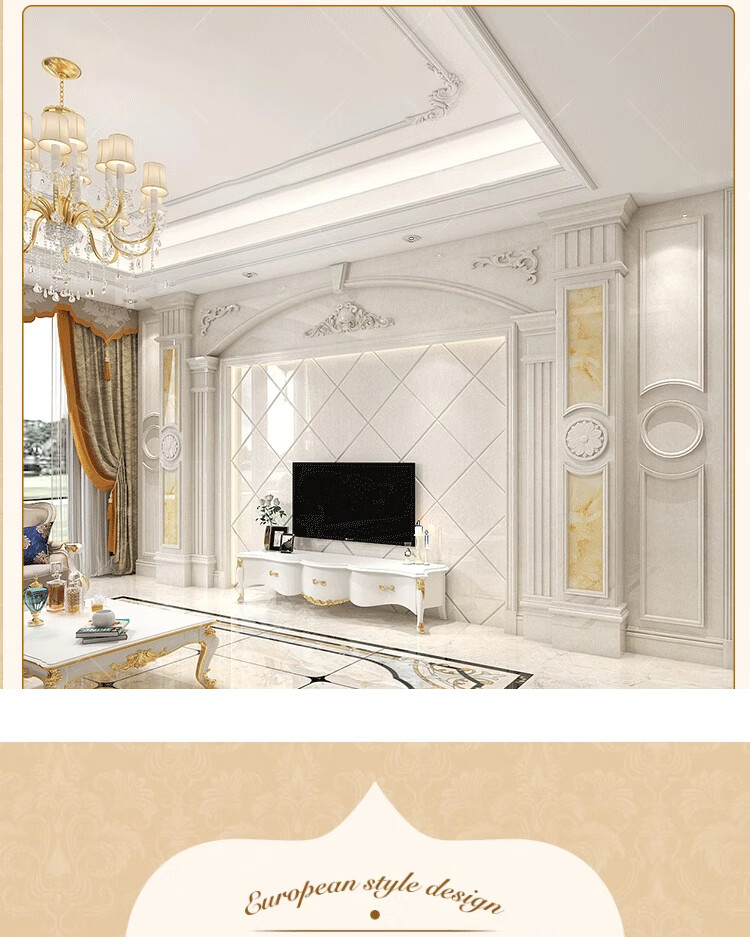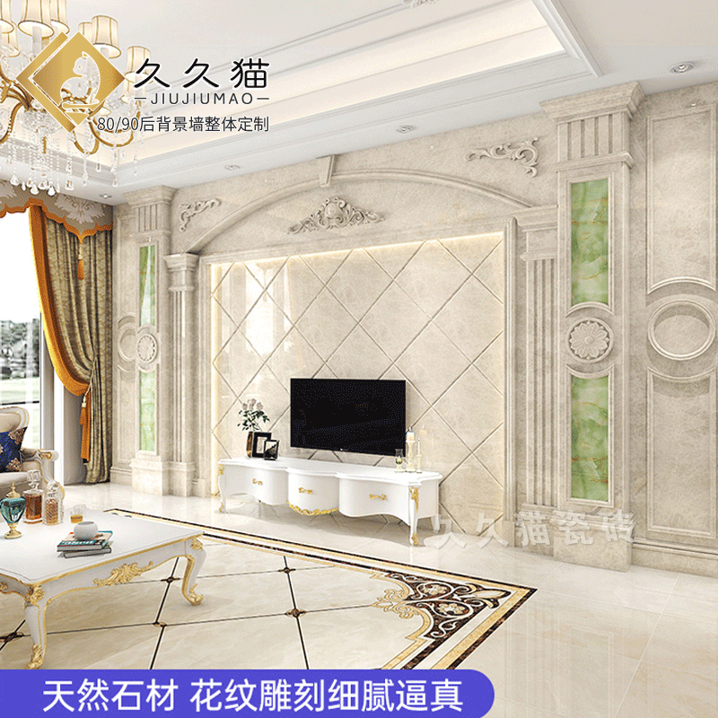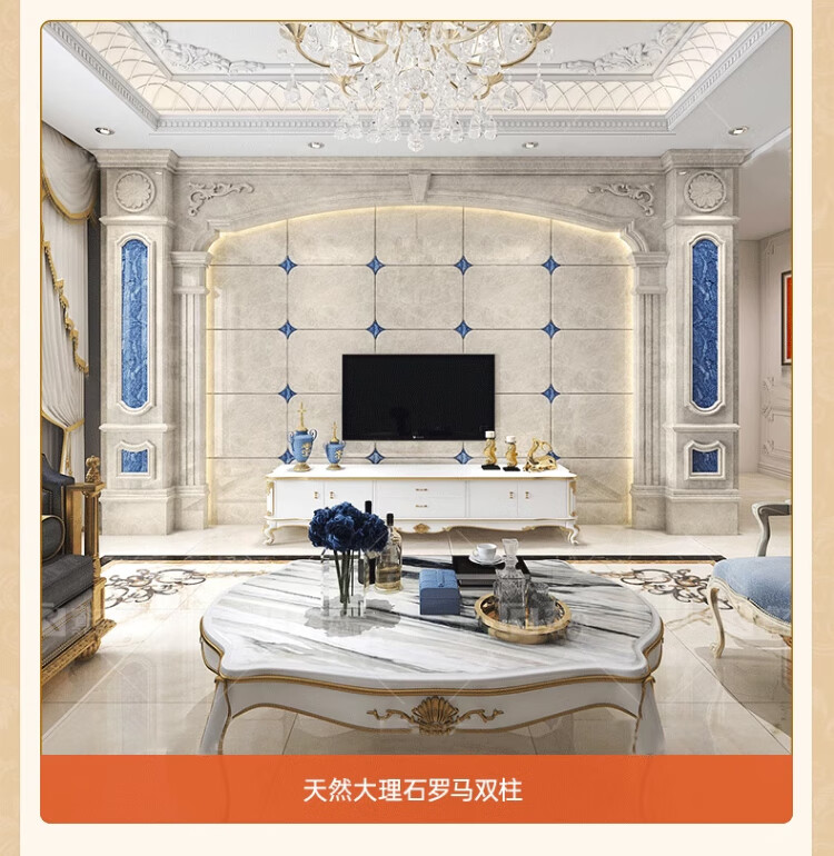 简欧瓷砖背景墙别墅欧式复式护墙板轻奢岩板电视墙罗马柱大理石材