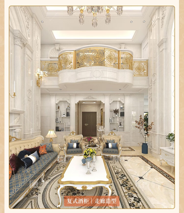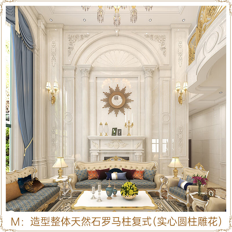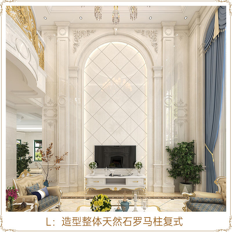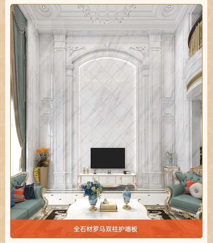 久久猫 复式楼罗马柱石材背景墙瓷砖装修欧式客厅护墙板中空别墅挑高大理石岩板影视墙大板挑空造型定制