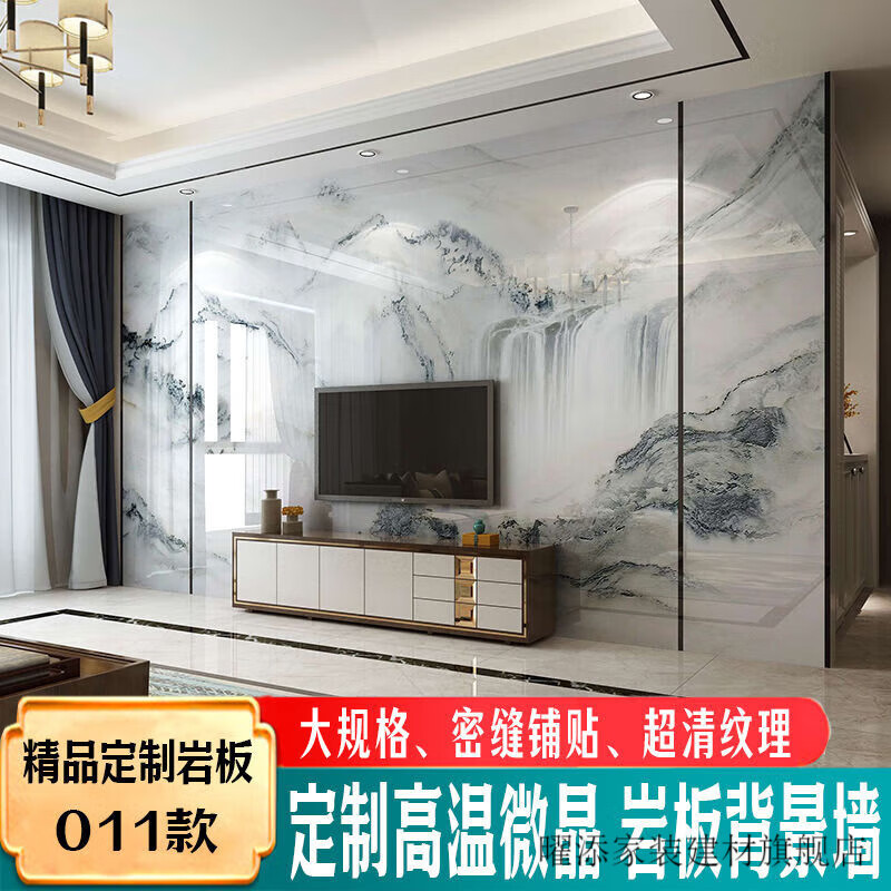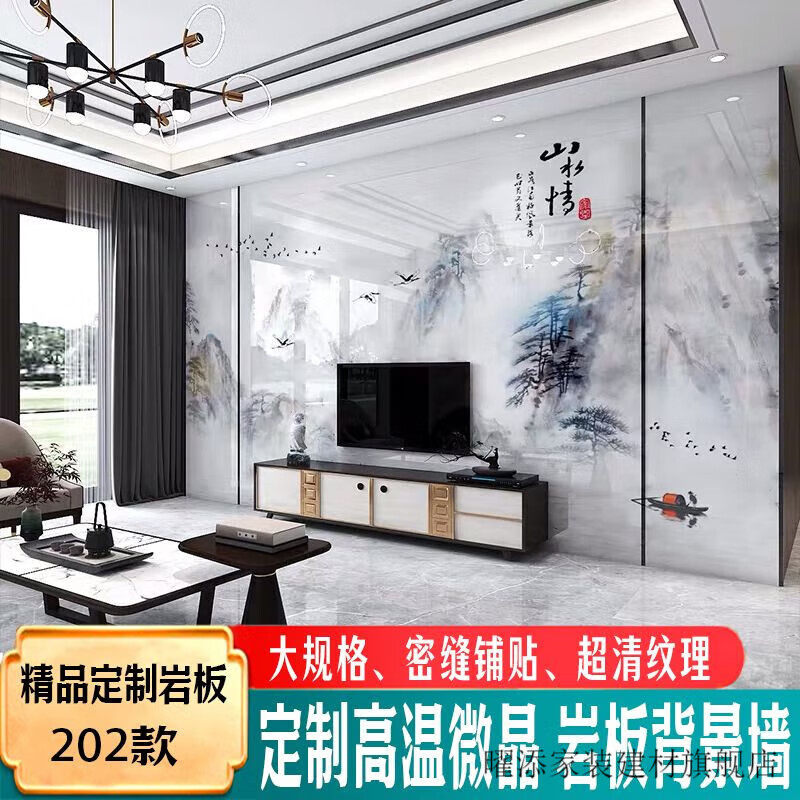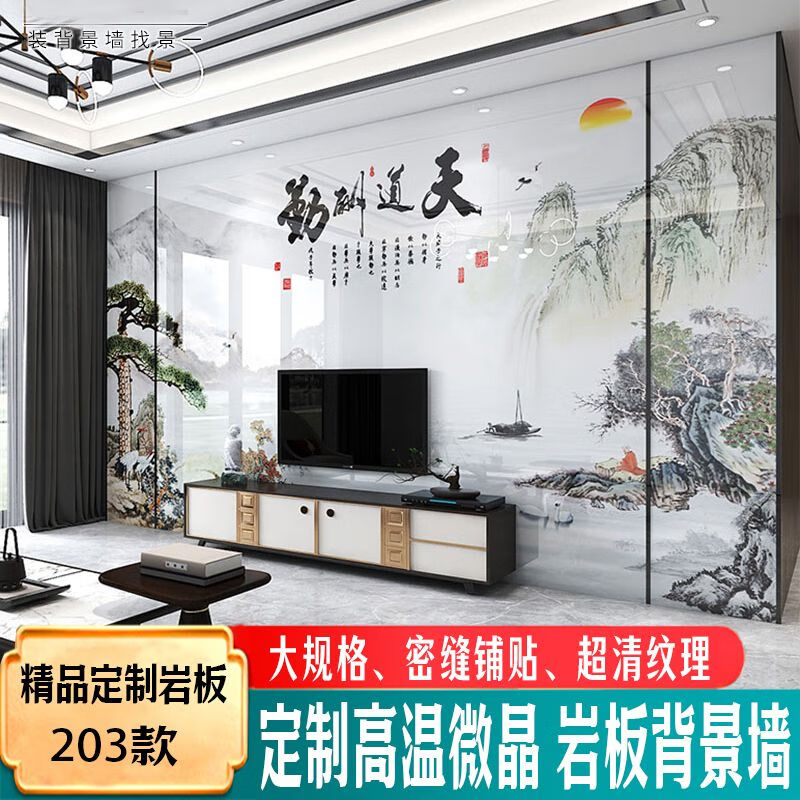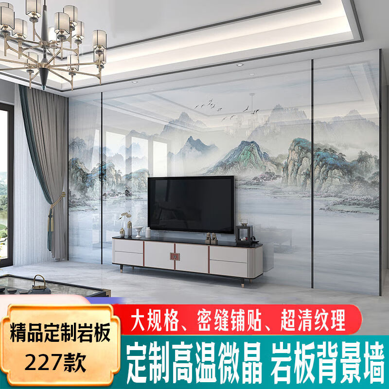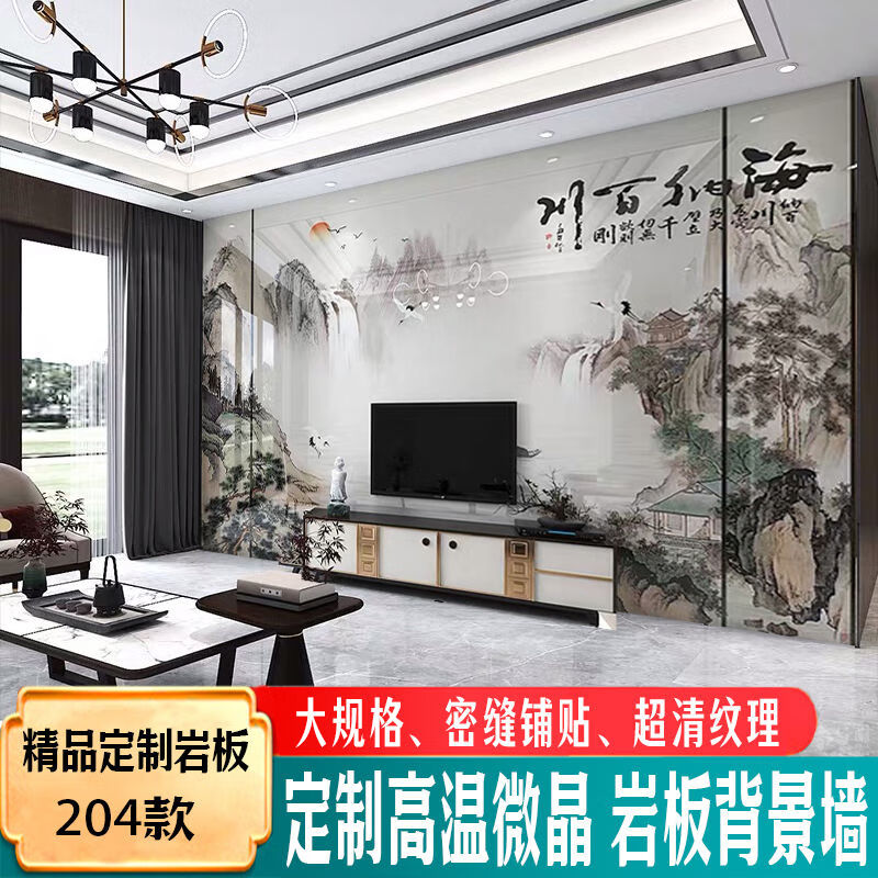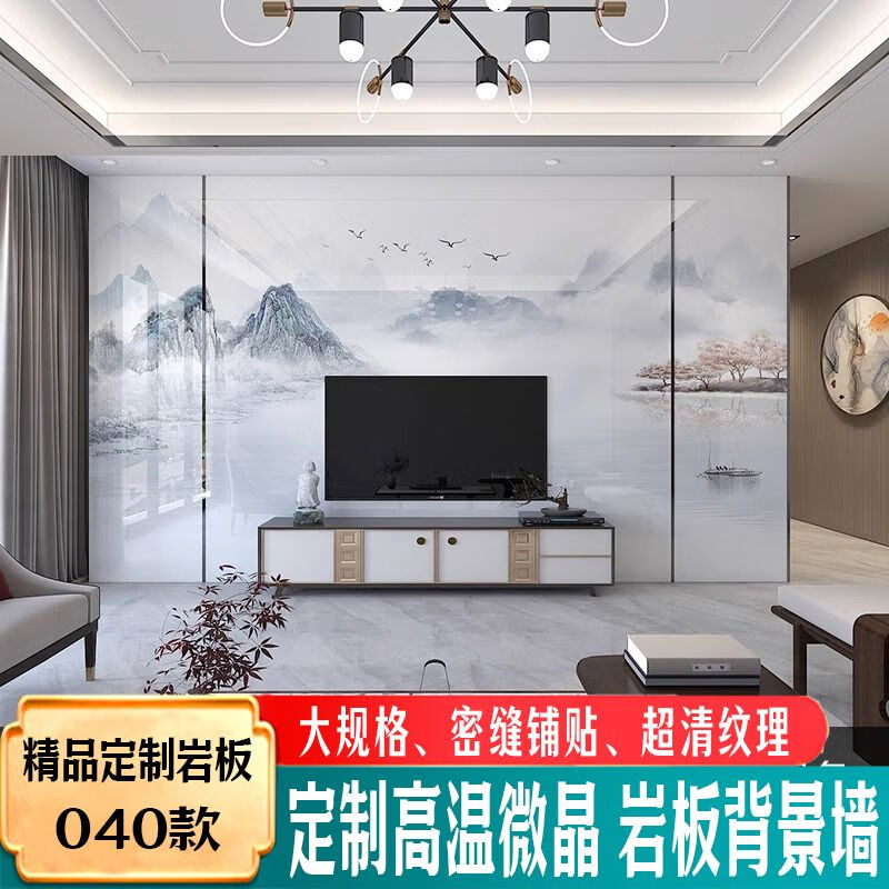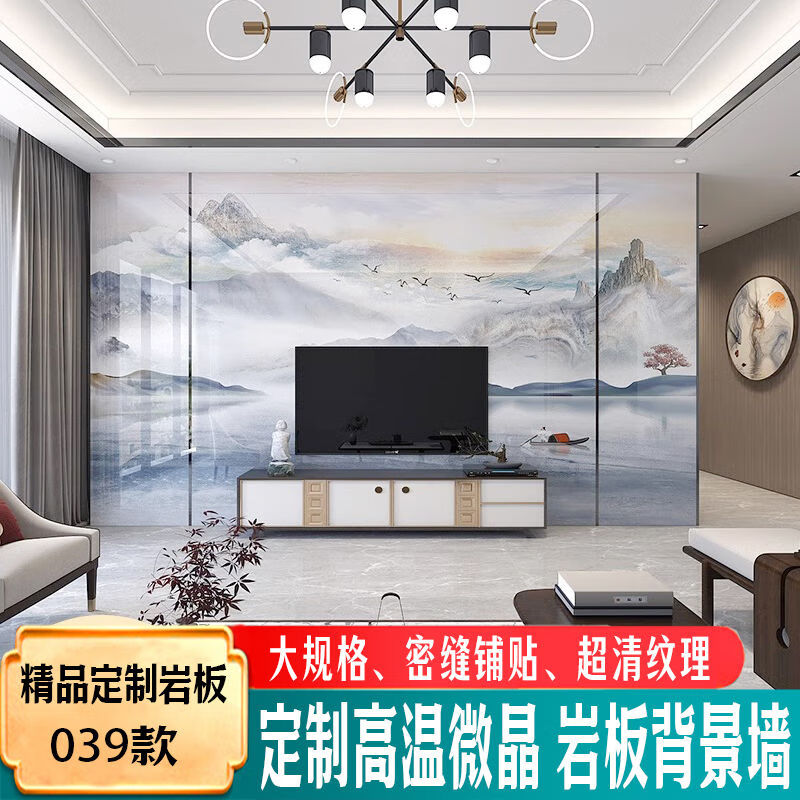 客厅新中式微晶石背景墙山水现代大理石影视墙岩板电视背景墙瓷砖 4-9.5