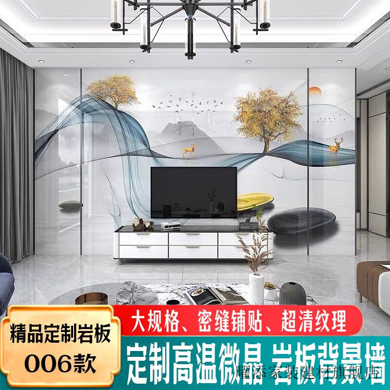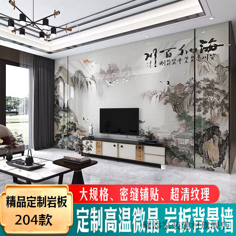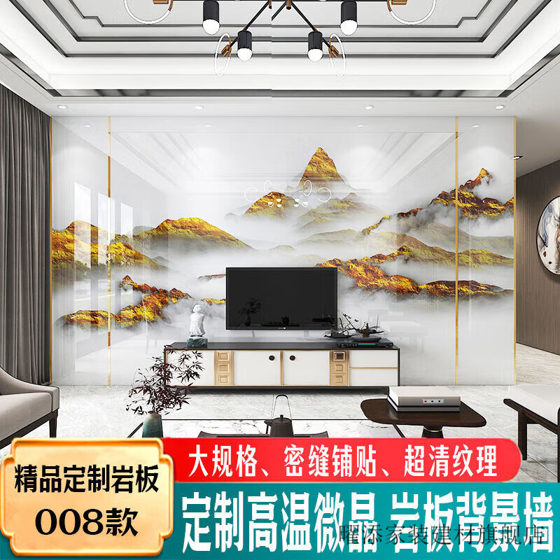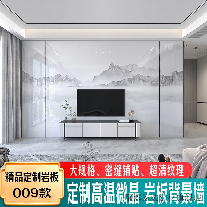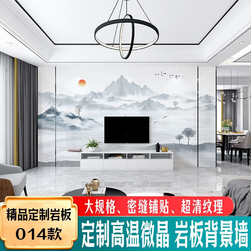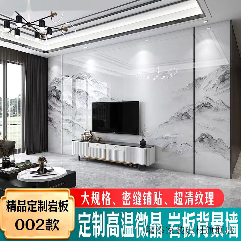客厅新中式微晶石背景墙山水现代大理石影视墙岩板电视背景墙瓷砖 4-9.5