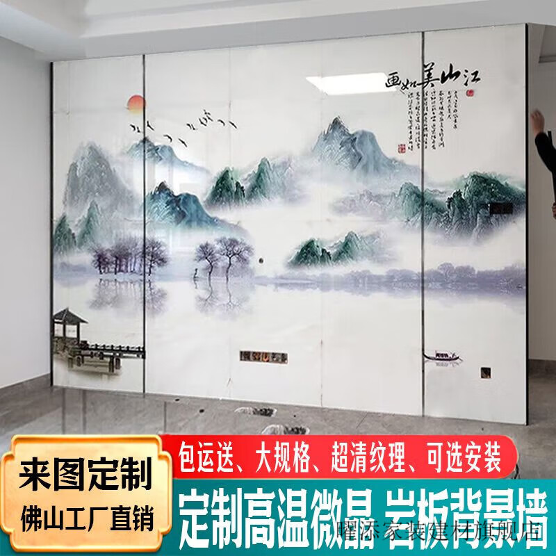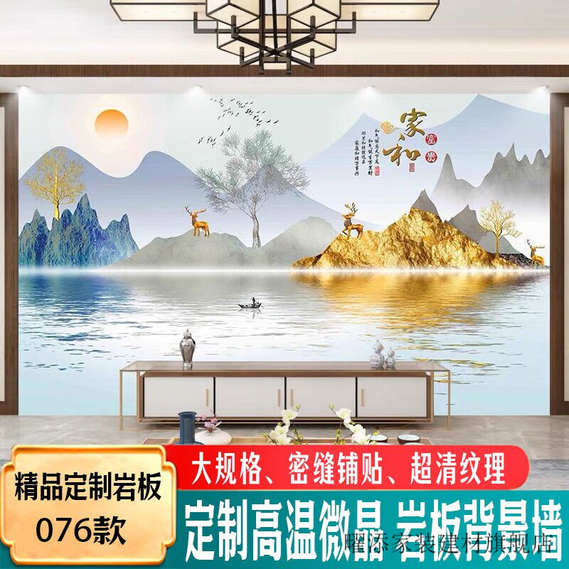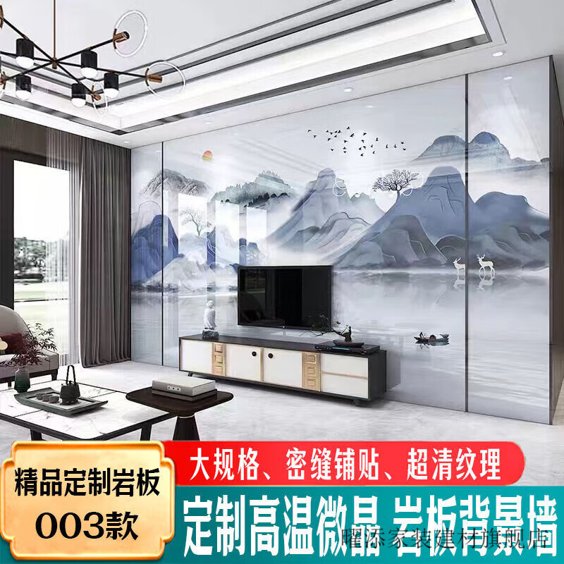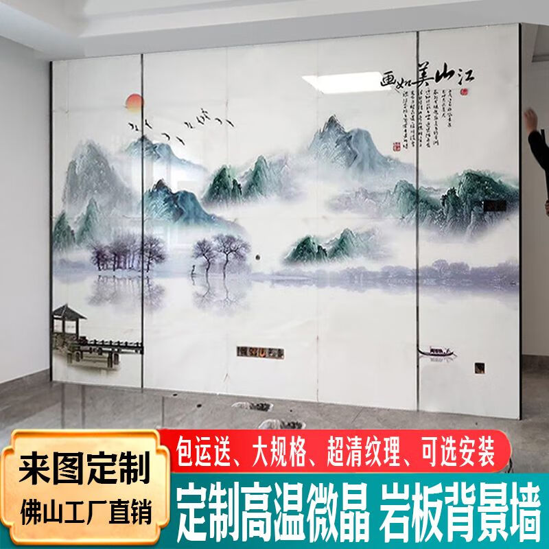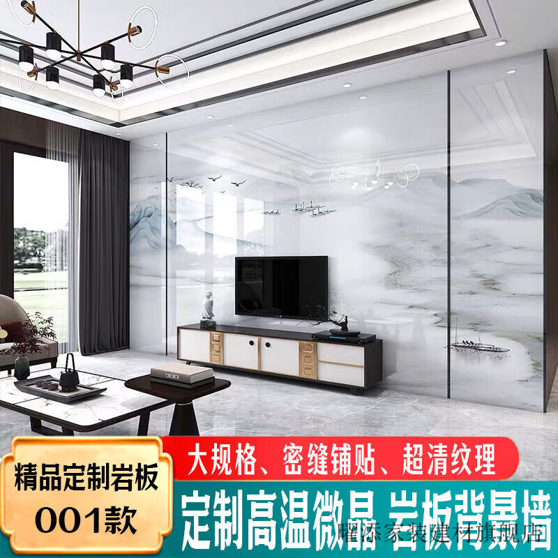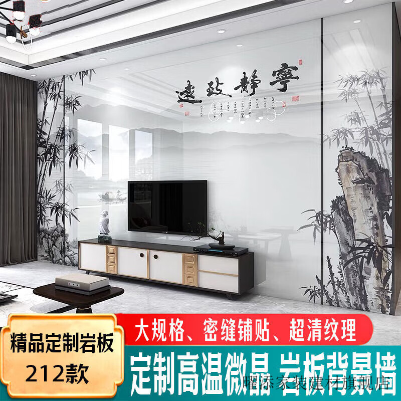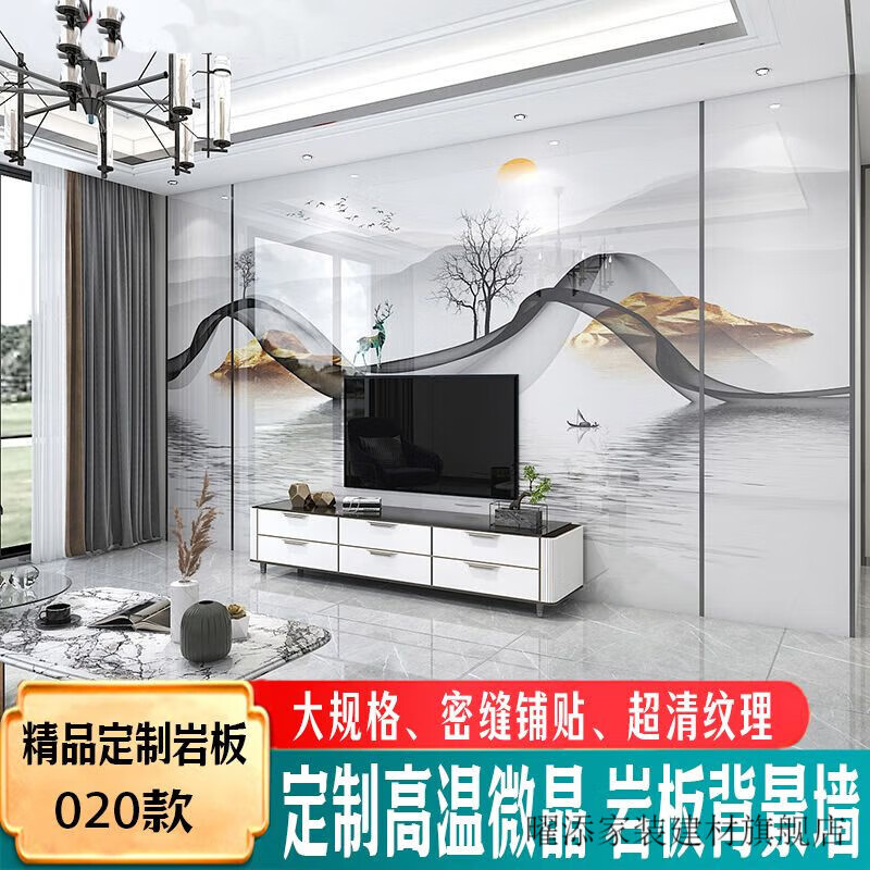客厅新中式微晶石背景墙山水现代大理石影视墙岩板电视背景墙瓷砖 4-9.5