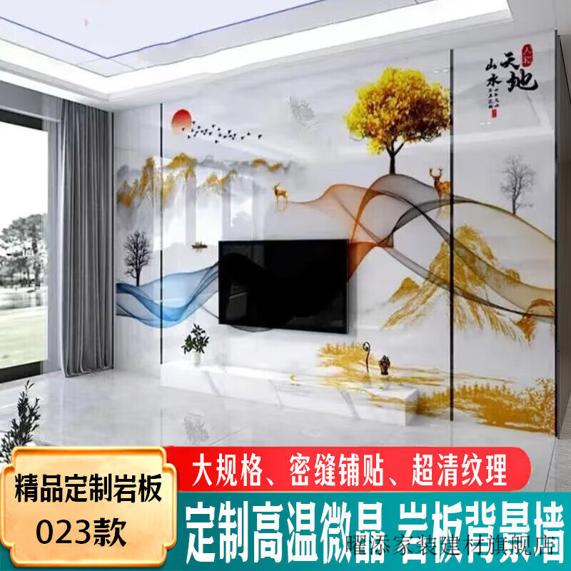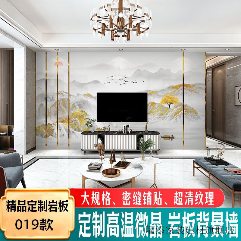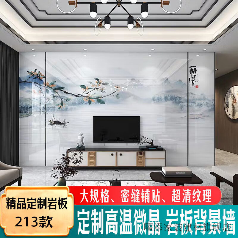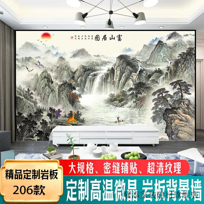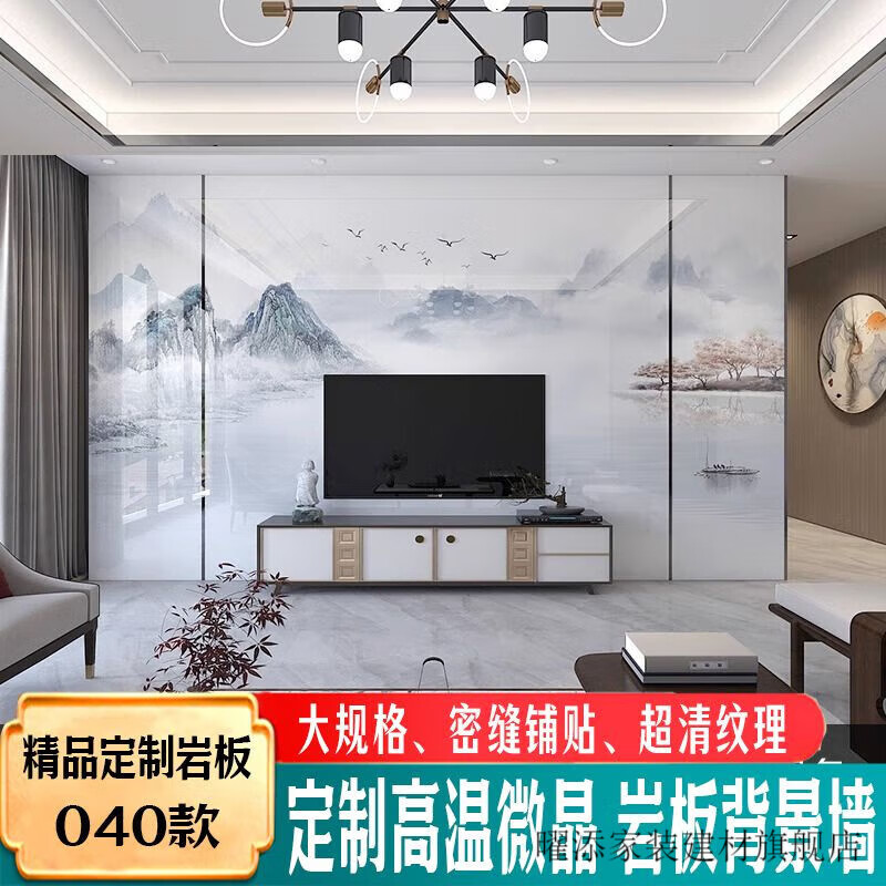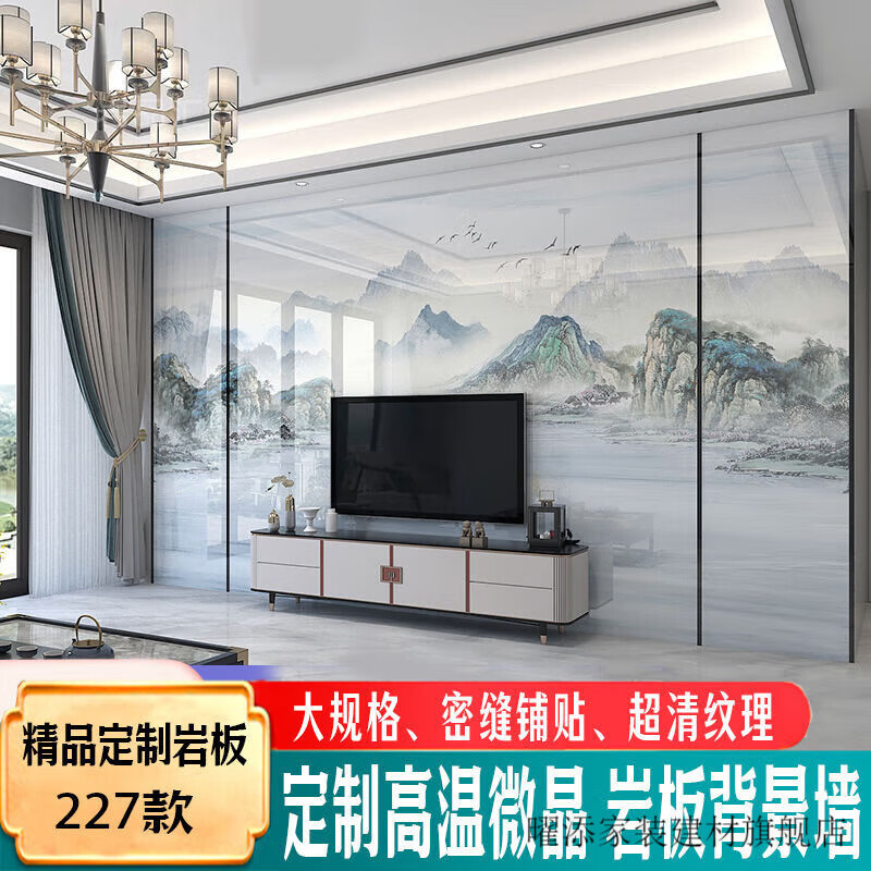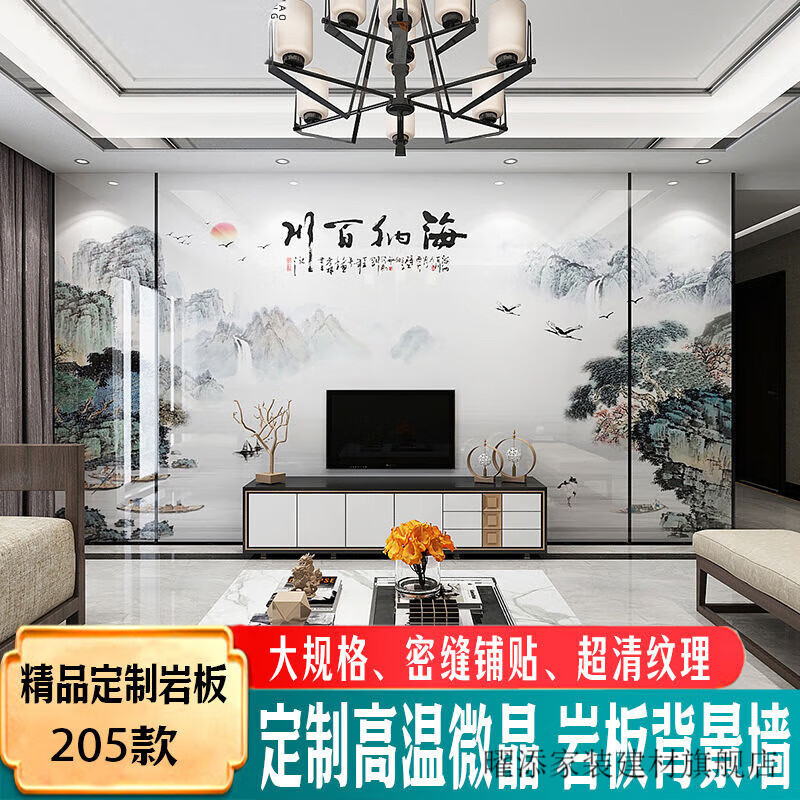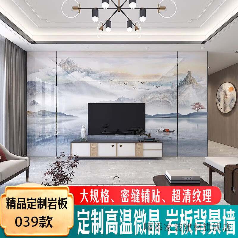 FANCYCHIC900x1800岩板瓷砖客厅悬空背景墙大板连纹客厅影视墙山水画新中式 0.9-1.8㎡
