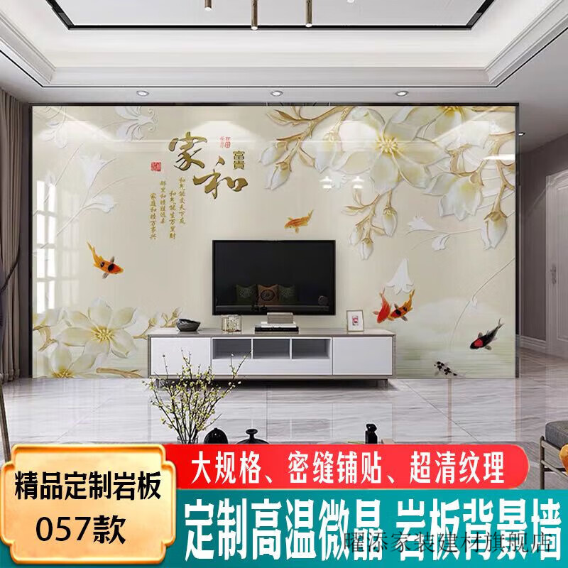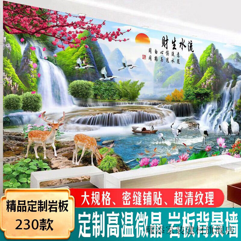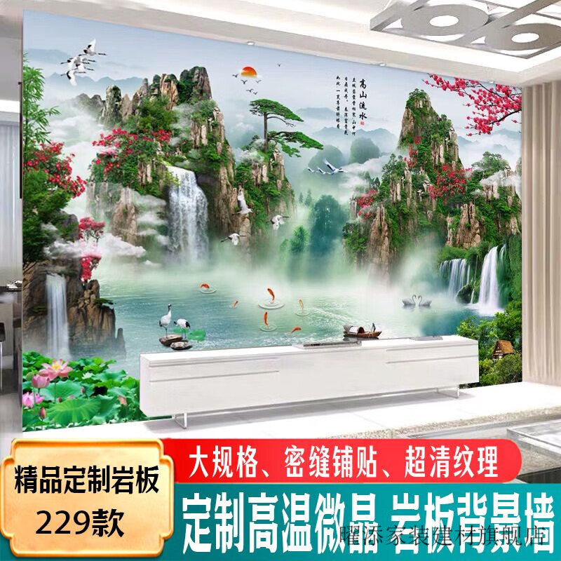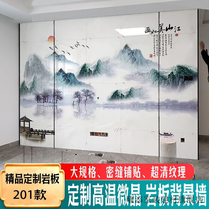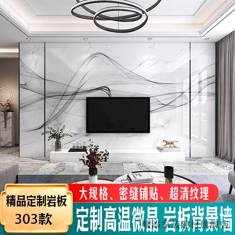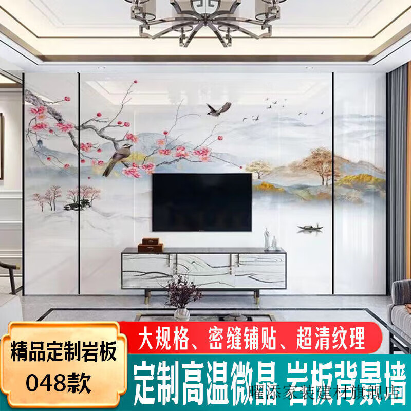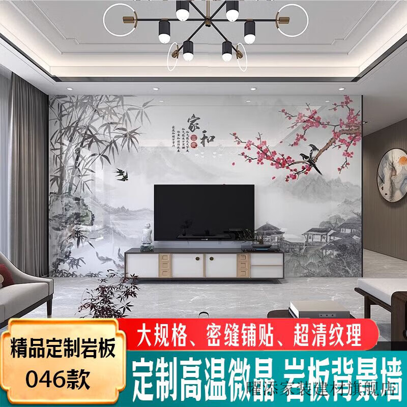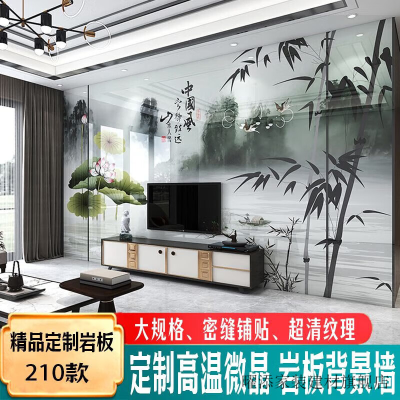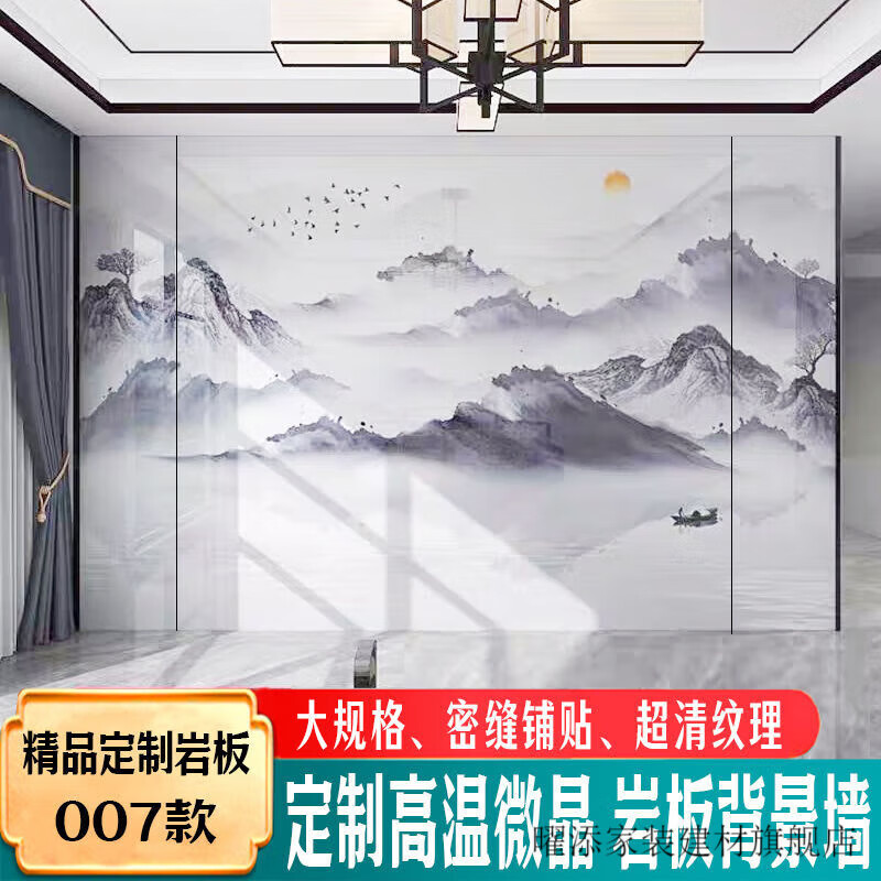 FANCYCHIC900x1800岩板瓷砖客厅悬空背景墙大板连纹客厅影视墙山水画新中式 0.9-1.8㎡