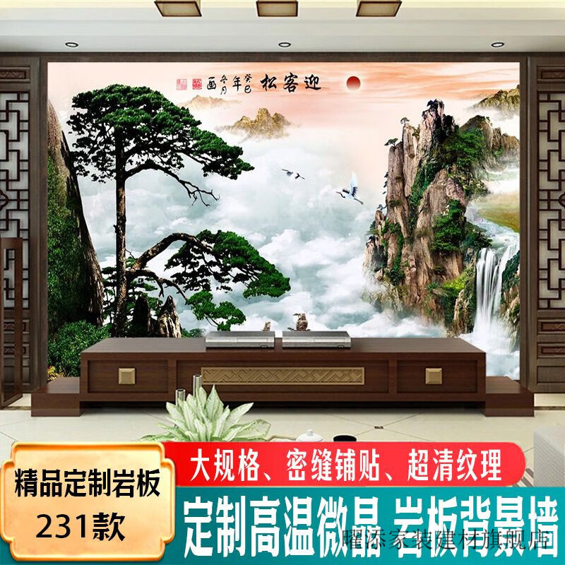 维诺亚3D山水迎客松瓷砖背景墙中式客厅背景瓷砖电视墙砖流水生财背景墙