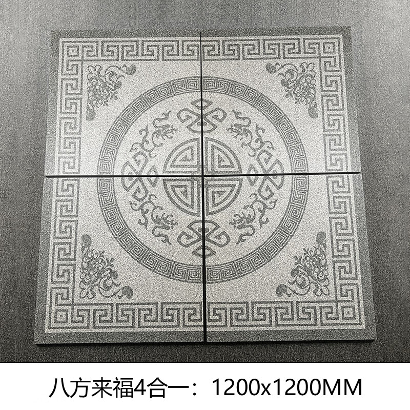 XMSJ鲤鱼荷花地砖图案新中式客厅拼花瓷砖玄关过道地板砖定制 800mmx800mm