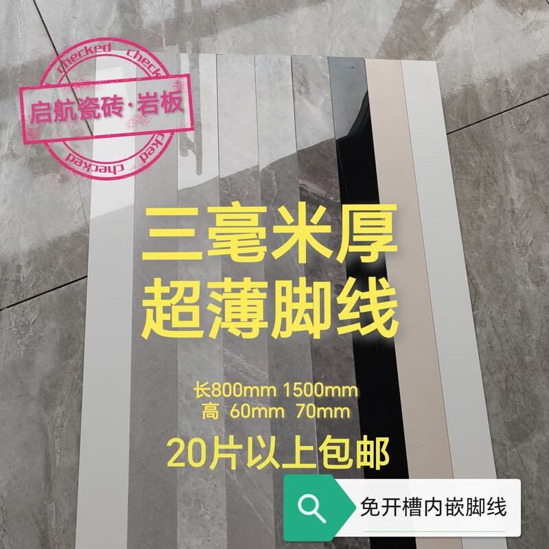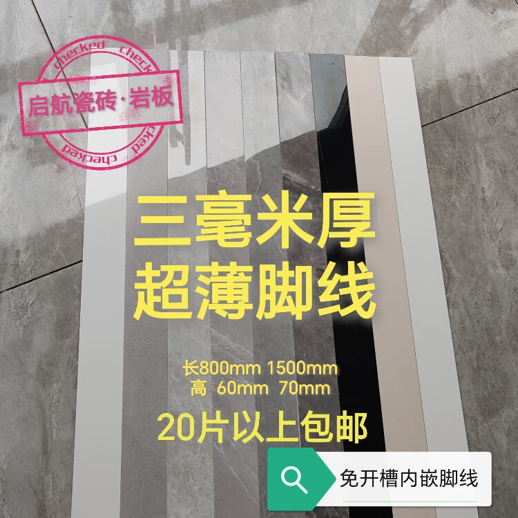 雅丹邦免开槽内嵌踢脚线3毫米岩板踢脚线瓷砖踢脚线全瓷脚线1.5米长 6cm
